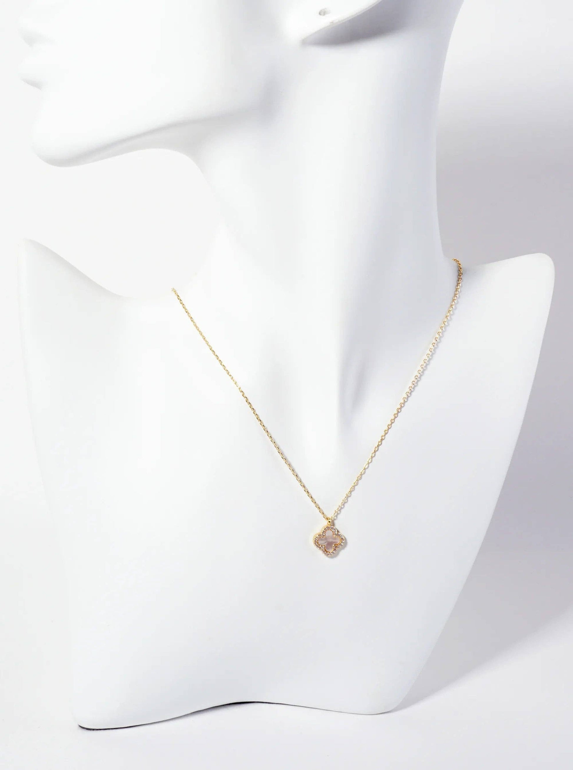 18K Gold-Dipped Brass Quatrefoil Pendant with CZ