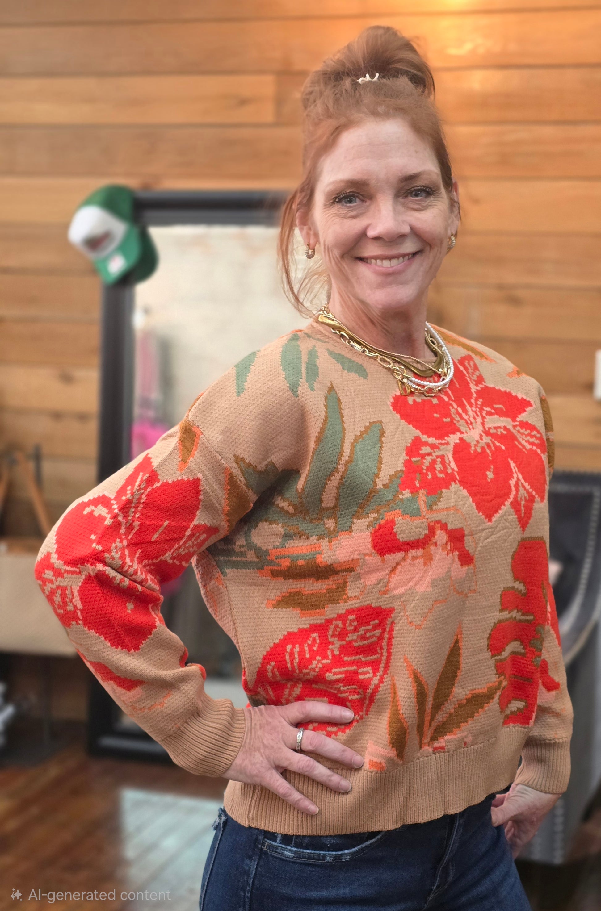 Wrap yourself in luxury with the Feelin Cozy LS Flower Sweater. This exquisite khaki sweater features a delicate floral pattern on a beautifully knitted fabric. The long sleeves add warmth and comfort, making it the perfect choice for a cozy day in or a stylish night out. Elevate your wardrobe with this exclusive piece.
