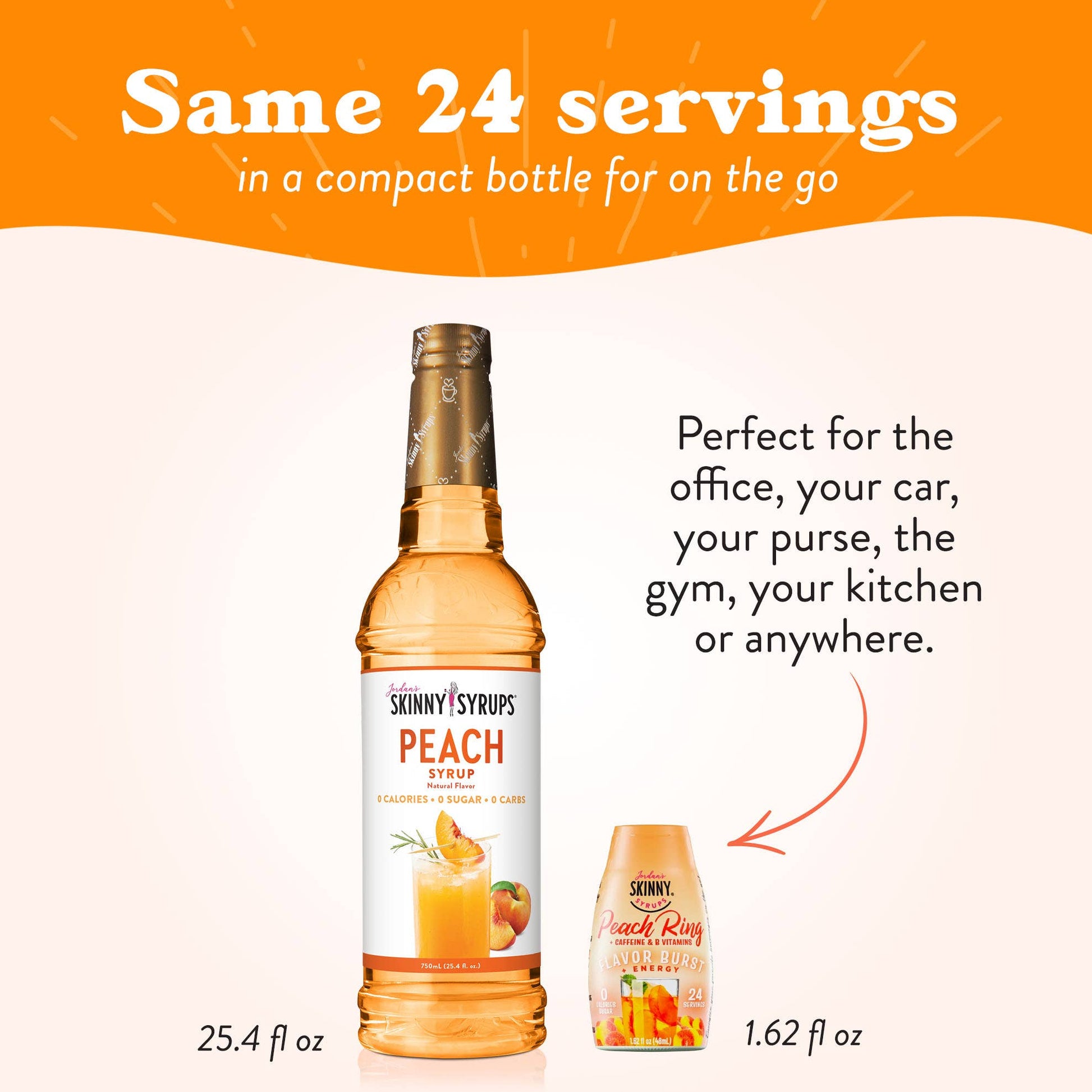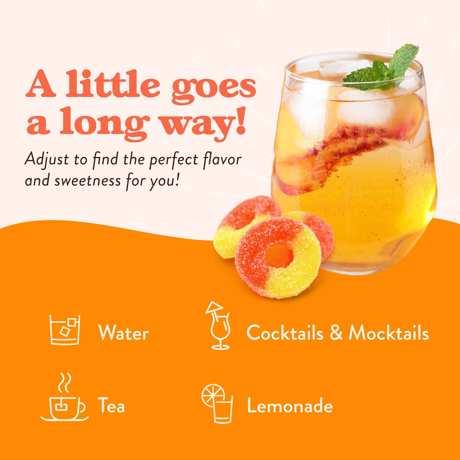 Transform your beverages into a juicy Georgia peach tea fantasy. Enjoy the nostalgic taste of Peach Ring Candy in a concentrated, 24-serving burst bottle. Perfect for the office, your car, your purse, the gym, your kitchen, or anywhere.