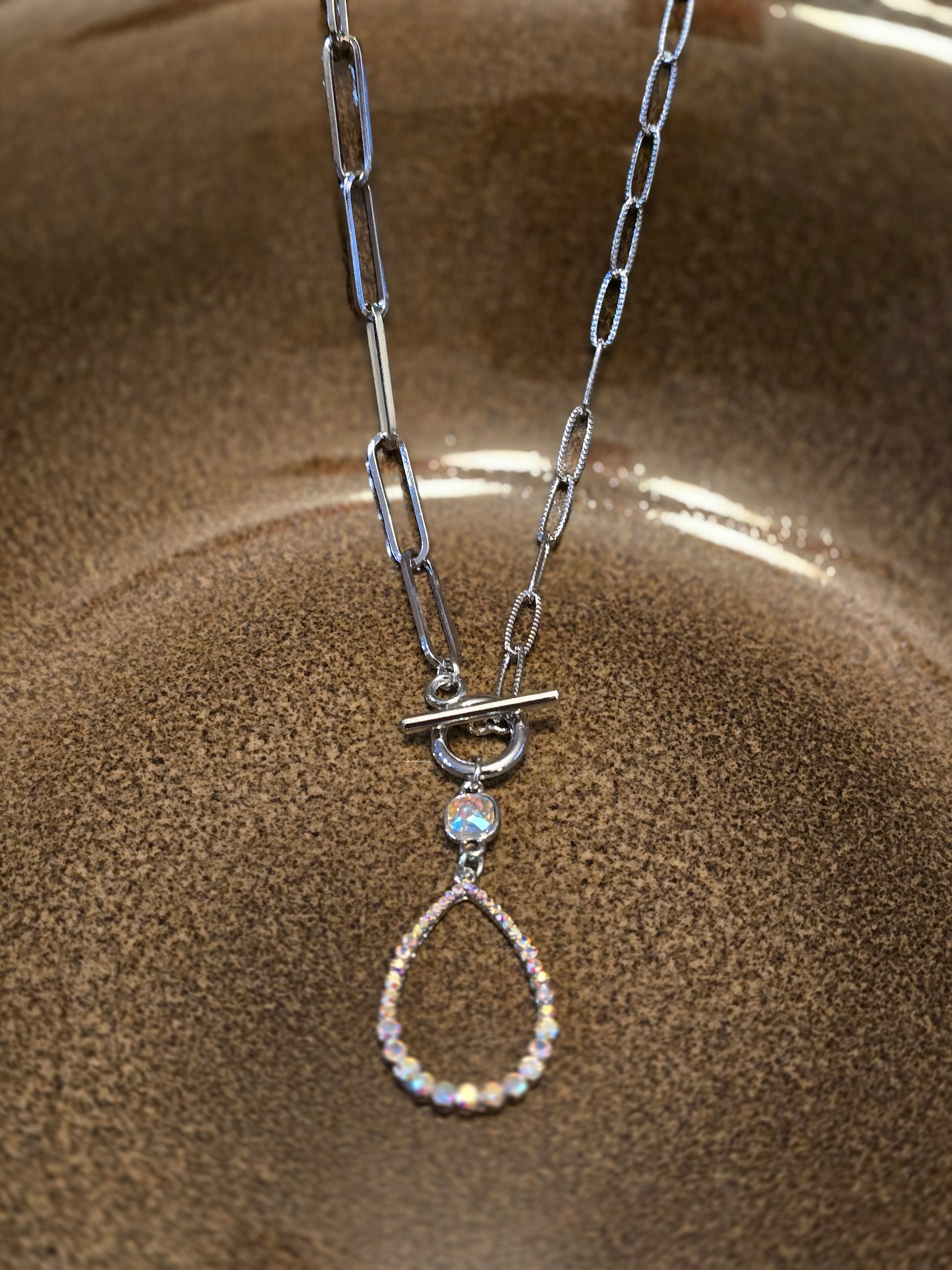 Krystal Silver Link Toggle Necklace