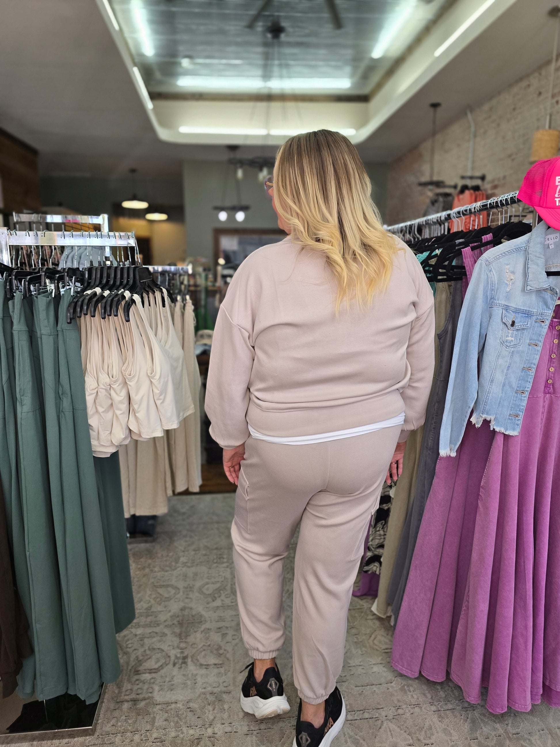 Get ready to make a splash in the Myra Scuba Luxe V-Neck Jacket. Made from a modal polyester spandex material, this jacket is both sleek and comfortable. Perfect for any occasion, this scuba luxe v-neck jacket is sure to make a statement and keep you feeling stylish all day long. Mocha cream color. Pairs well with the Myra Jogger Pants.