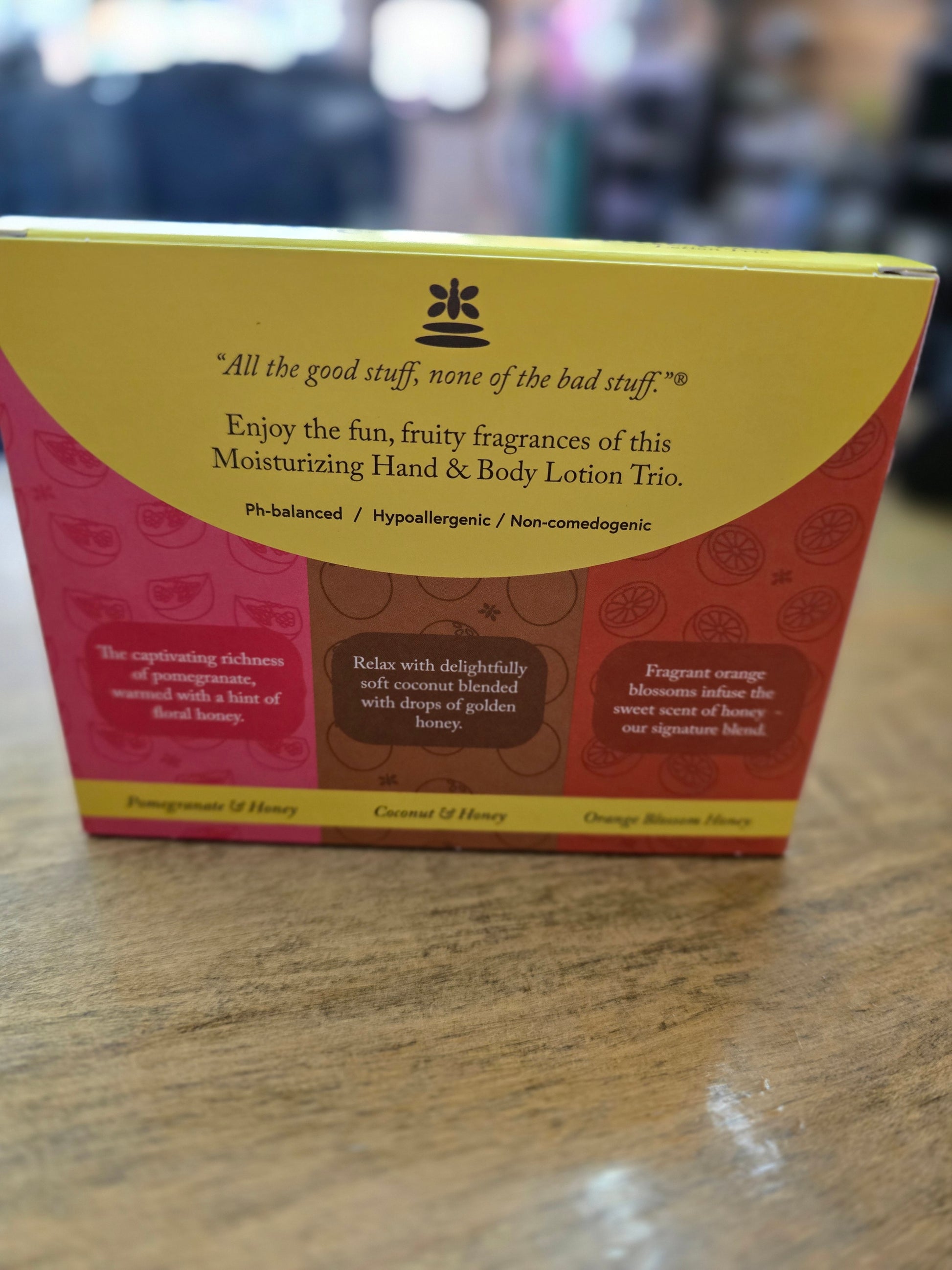 Indulge in the luxurious and exclusive NB Fruit Basket Lotion Trio by The Naked Bee. This 3 pack includes Orange Blossom Honey, Coconut & Honey, and Pomegranate & Honey. With a pH balanced, hypoallergenic, and non-comedogenic formula, this lotion is sure to nourish and moisturize your skin without any harmful ingredients. Experience all the good stuff, without any of the bad stuff.