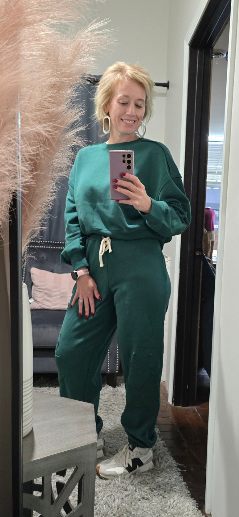 Get cozy in our Pine Haven Pullover! Made with a relaxed fit and in a deep dark green color, this sweatshirt is perfect for lounging in all day. Grab the matching pants for a complete set!