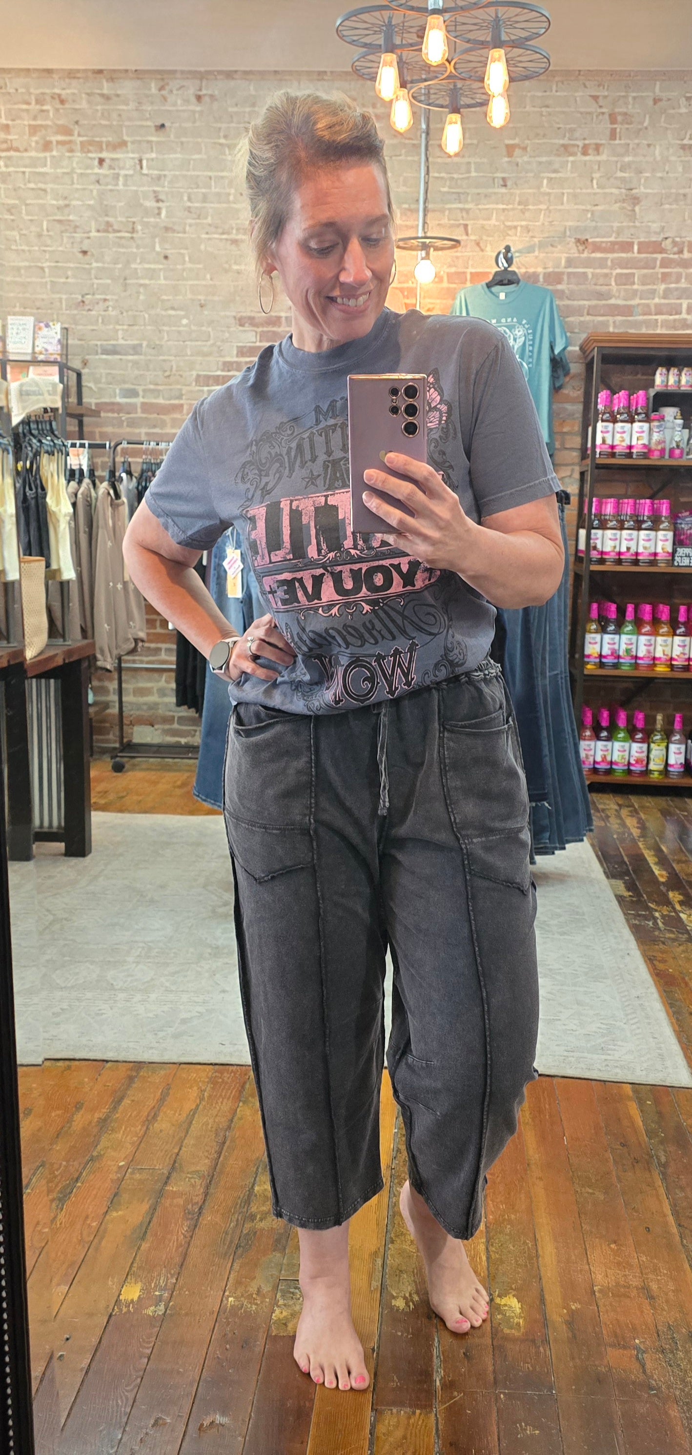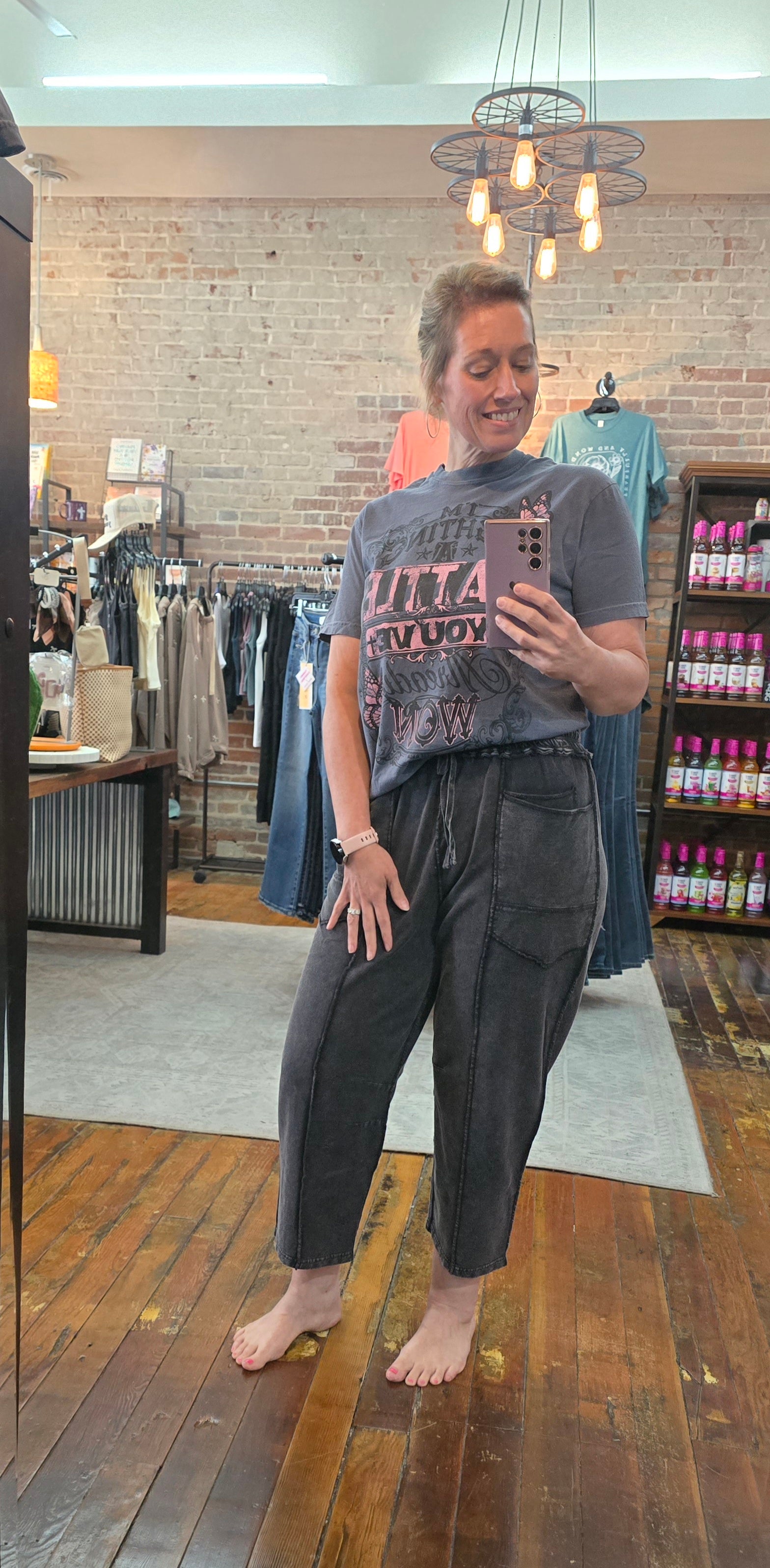 These Slay The Day Black Pants bring comfort and style together with their soft mineral-washed terry knit fabric. The elastic waist ensures a perfect fit, while the cinch hem at the ankle adds a fun, trendy twist. Perfect for lounging or stepping out, these pants keep you cozy and effortlessly cool all day long.