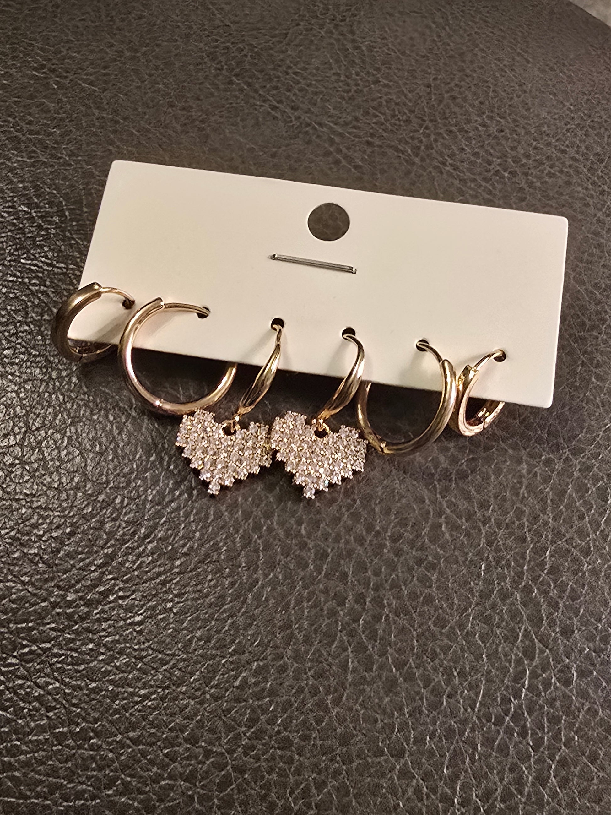 "Get ready to hug your ears with cuteness overload! The Sparky Heart Hugger Set includes 3 pairs of gold-plated hoop earrings featuring adorable heart charms. Perfect for adding a touch of charm to any outfit. (Don't worry, no actual hugging involved.)"